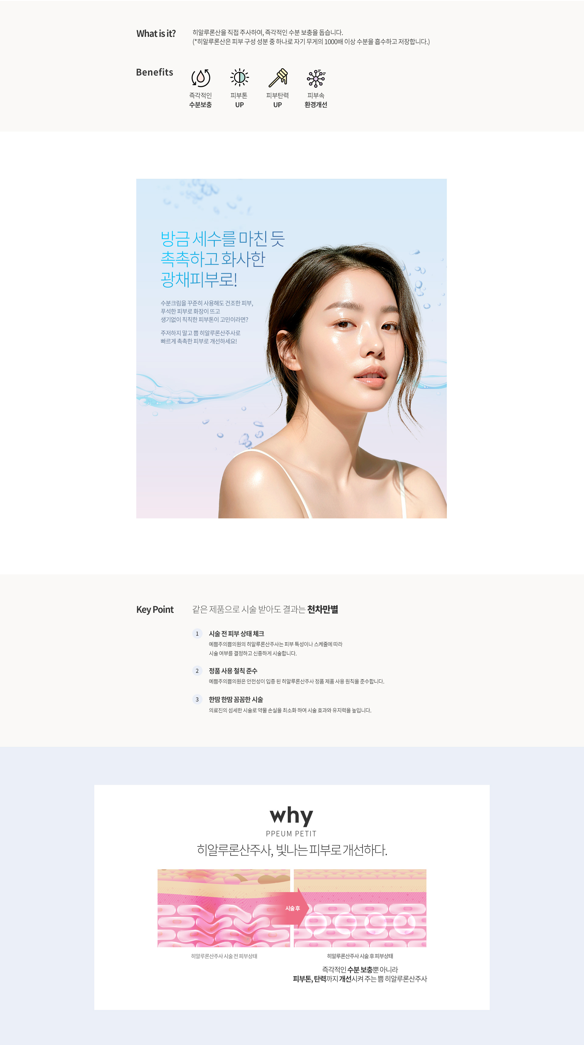 건조한 피부 속 수분 보충과 피부톤을 밝히고 미세주름까지 개선하여 맑고 투명한 피부로!